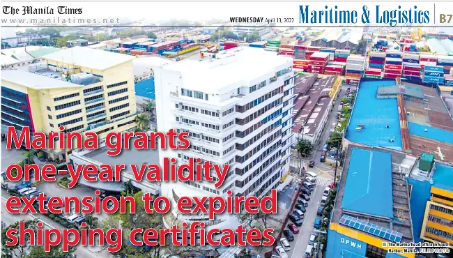 HE Maritime Industry Authority (Marina) has extended by oneyear the validity of expiring and expired accreditation certificates of domestic shipping operators and maritime enterprises.