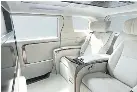 The most luxurious layout is the four-seater model, as this ditches the third row altogether in favor of two armchairs. More privacy is also added courtesy of the power-deployable sunshades on all windows as well as the partition that separates the rear occupants from the driver. Behind the partition is a massive 48-inch screen where VIPs can link their laptop for work. Speaking of laptops, the armchairs also contain leather-wrapped folding tables that are stored under the center armrests as if you’re seated in a first-class airplane seat.